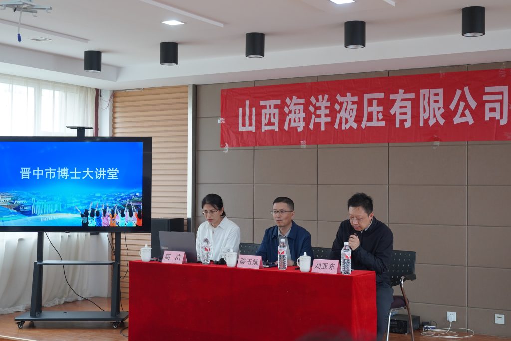 On April 29, 2024, the university “Doctor Lecture Series” was held in the third-floor meeting room of Shanxi Ocean Hydraulic Group. The training session was hosted by Liu Yadong, General Manager of Ocean Hydraulic Group, with Dr. Gao Jie from Shanxi University of Engineering Science and Technology serving as the keynote speaker. Attendees included Chen Yubin, Deputy Director of the Jinzhong Municipal Industry and Information Technology Bureau, as well as representatives from over 40 enterprises. Dr. Gao introduced the concept of cloud manufacturing, the principles and features of blockchain, and the implementation of distributed management through cloud manufacturing in clear and concise language. She also engaged in discussions with the participants on current related research both domestically and internationally.