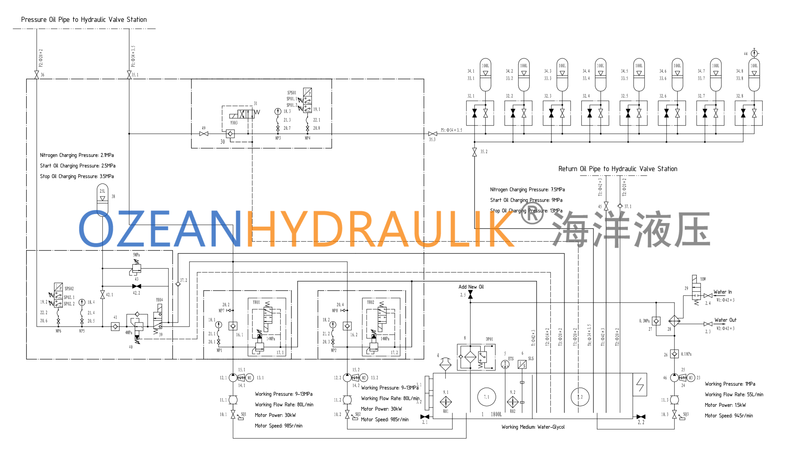 It consists of a hydraulic power station,accumulator group, hydraulic controlvalve platform, and other components.