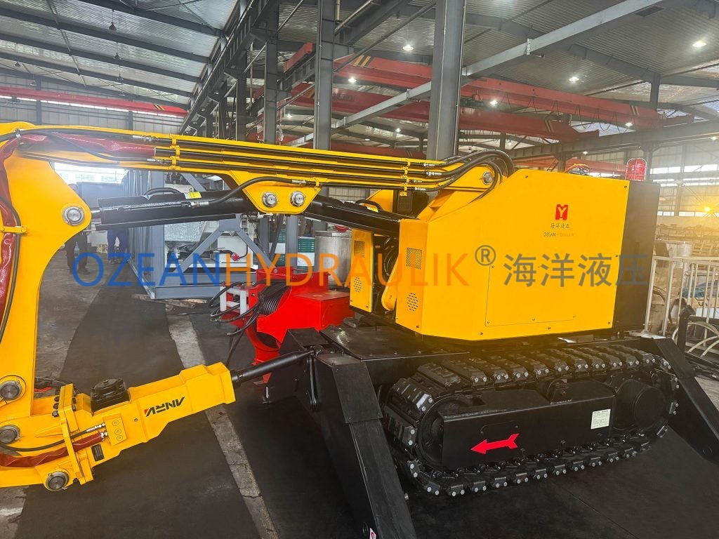 Tundish Deslagging Robot is a fully hydraulic, wirelessly remote-controlled, tracked self-propelled robot. Its flexible mechanical arm, combined with tools such as hydraulic hammers, slag removal hammers, excavation buckets, hydraulic shears, and hydraulic grabs, enables it to perform various construction tasks. The equipment is powered by a diesel internal combustion engine. Featuring a compact design, easy mobility, and the ability to maneuver flexibly in confined spaces, it is particularly suitable for operation in limited areas.